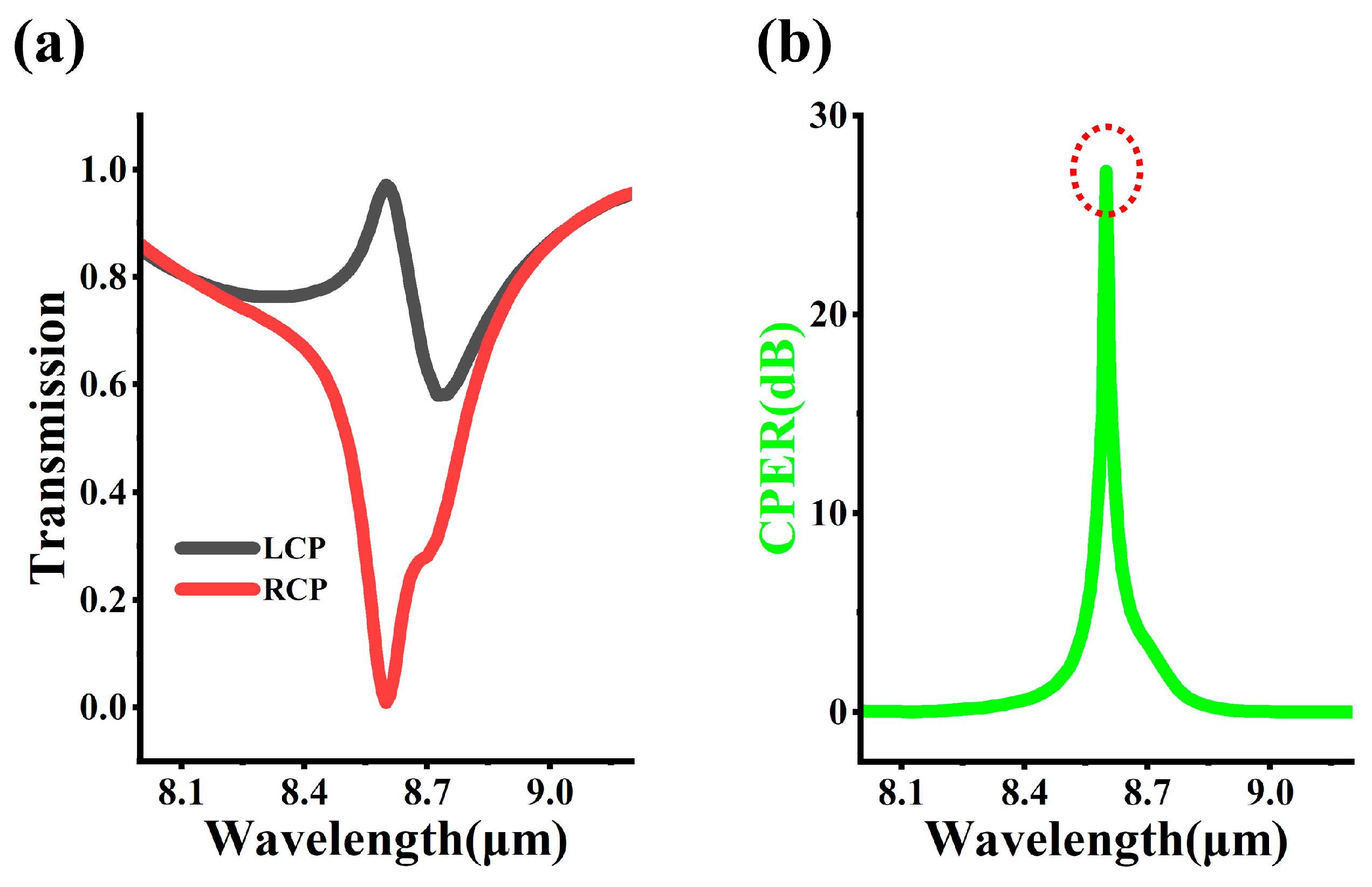 - Zhang, R.; Zhang, Z.; Fan, Y.; Zhang, H.; Chu, J. Single-Layer Transmissive Chiral Plasma Metasurface with High Circular Polarization Extinction Ratio in Visible Wavelength. Nanomaterials 2023, 13, 813. [Google Scholar] [CrossRef]
