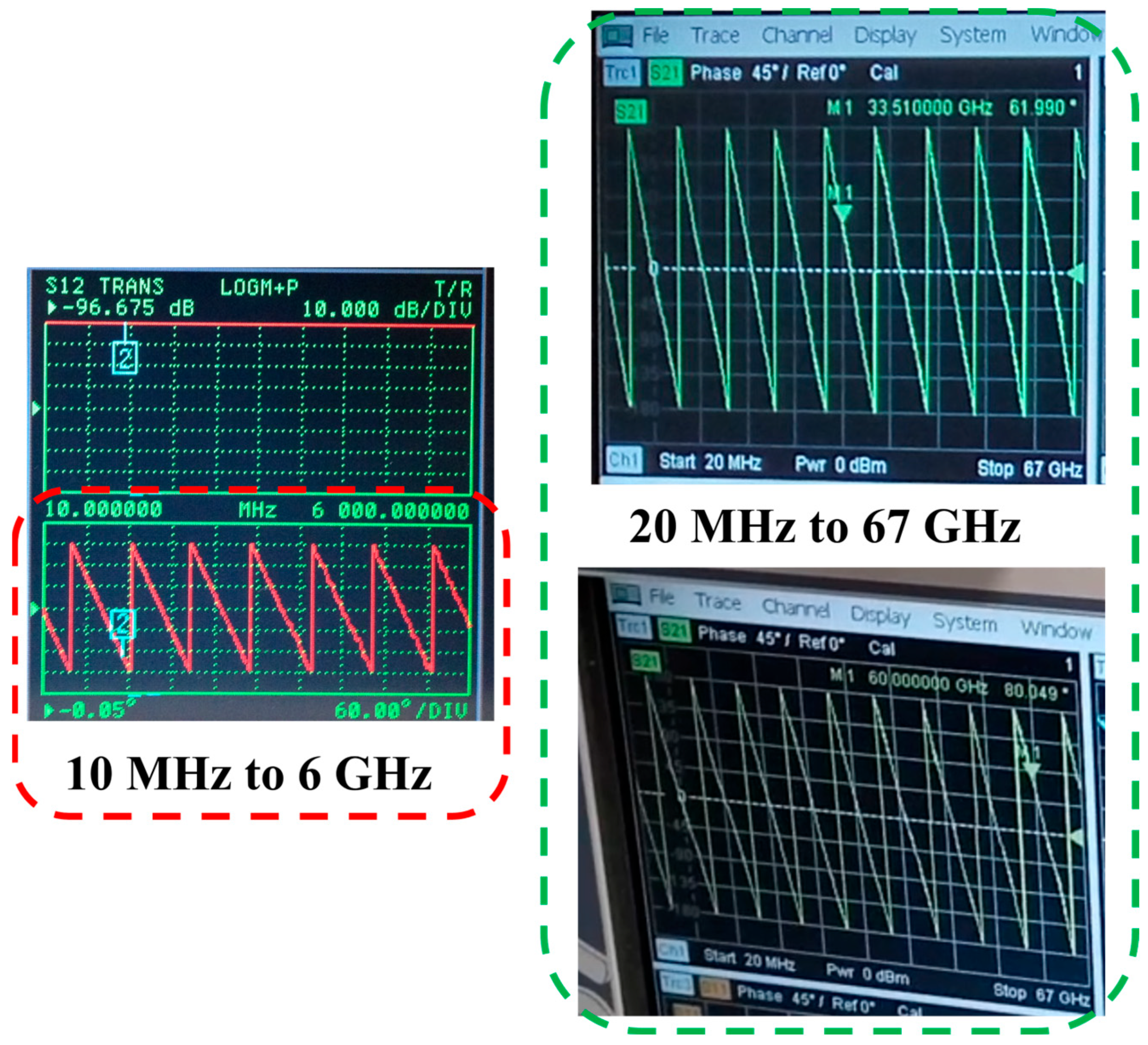 The operating frequency is a critical parameter that distinguishes engineering domains, from the static fields of electrostatics to the dynamic fields of modern technology. Contemporary applications leverage a wide range of the electromagnetic spectrum, operating at specific regimes from radiofrequency (including microwave (MW) [1] and millimetre-wave (mmW) [2,3,4]) to terahertz (THz) [5,6] and optical [7,8,9,10] wavelengths. These technologies enable advancements in diverse fields such as precision metrology [11] and liquid crystal systems [4,12,13]. More specifically, frequency is underpinning the material dispersion [14] as well as the device geometry design [3,6,9]. Phase, representing the angular position of an electromagnetic field (wave) in space and time, is playing a critical role in the above frequencies, targeting MW, mmW, THz, and optical applications concerning wavefront phase control [15], e.g., phased array antenna [16,17] for electromagnetic beam steering, intelligent reconfigurable surface (wherein the phase shift of 180° is normally required) [18,19], liquid crystal on silicon (LCOS) [8,20], phase plate [21], and orbital angular momentum (OAM) [22], to name a few. For two-port passive phase shifters [3,4,23], understanding the numerically simulated and experimentally measured results by correct interpretations is of equal importance to the measurement precision of electronic instrumentation.