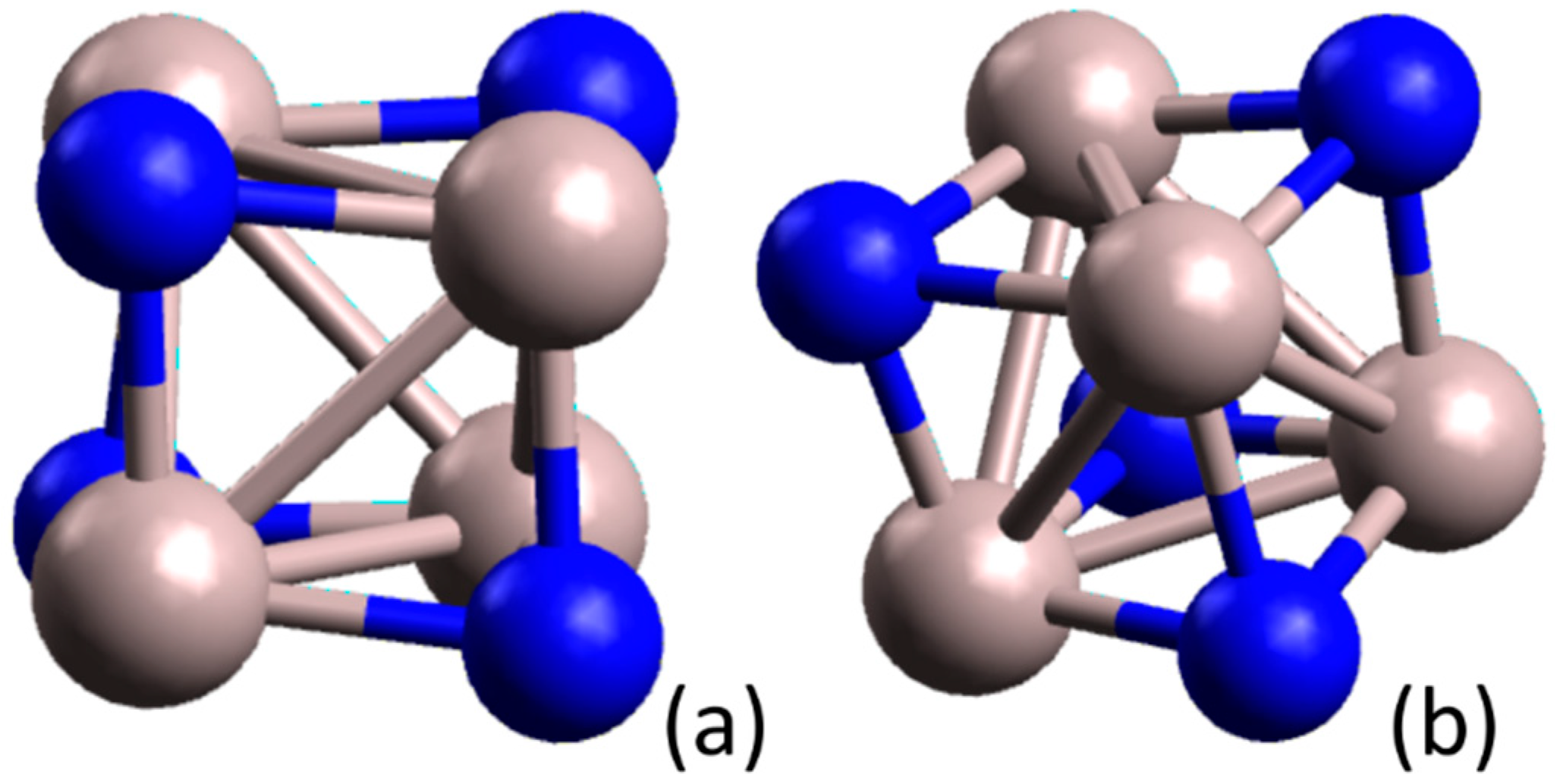 3.1.3. Geometries of Al32N32 Along One, Two, and Three Directions
