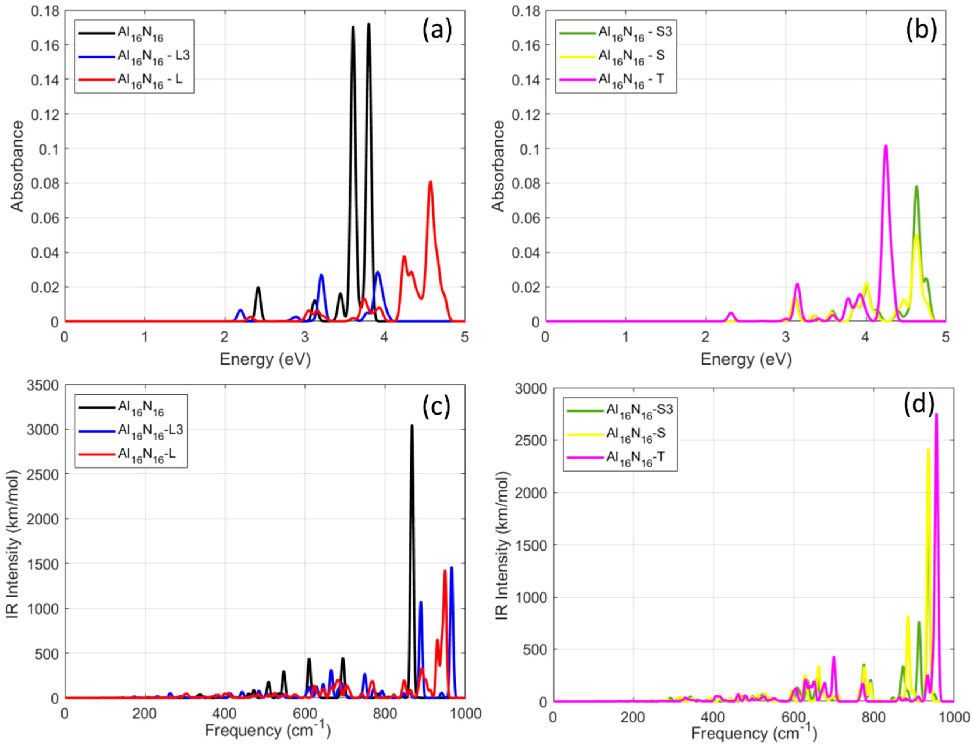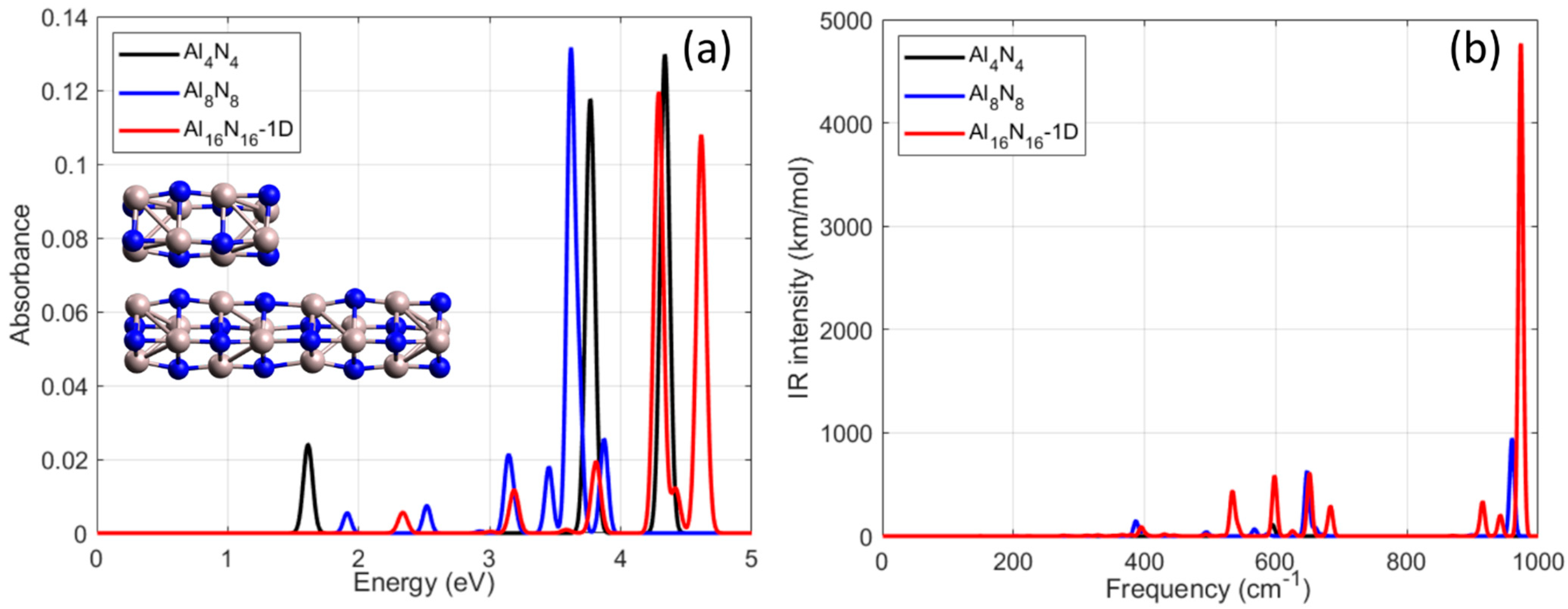 36]. It should also be mentioned that among the latest DFT studies on AlN-based clusters, sol–gel mechanisms for AlN formation and IR-based drug delivery modeling on tetragonal AlN, complement the present work, where size-dependent and shape-dependent analysis of optical and vibrational properties are provided [