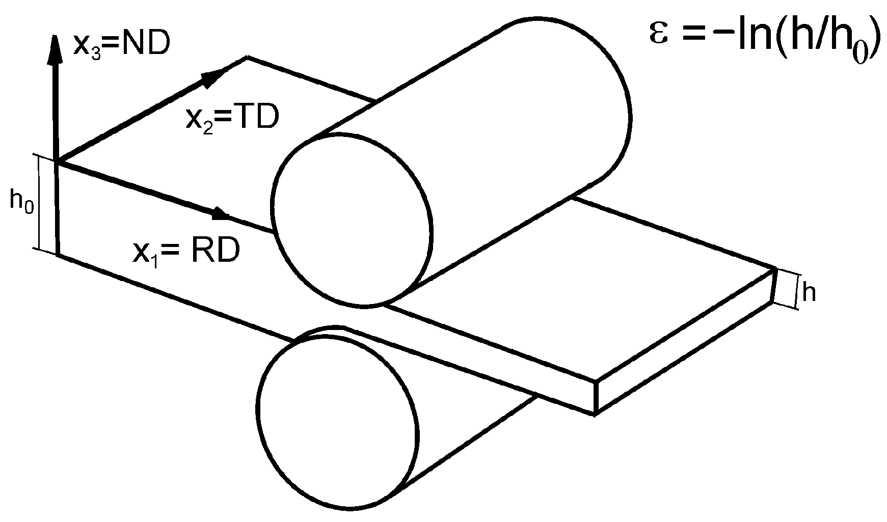 - Wierzbanowski, K.; Wroński, M.; Leffers, T. FCC Rolling Textures Reviewed in the Light of Quantitative Comparisons between Simulated and Experimental Textures. Crit. Rev. Solid State Mater. Sci. 2014, 39, 391–422. [Google Scholar] [CrossRef]
