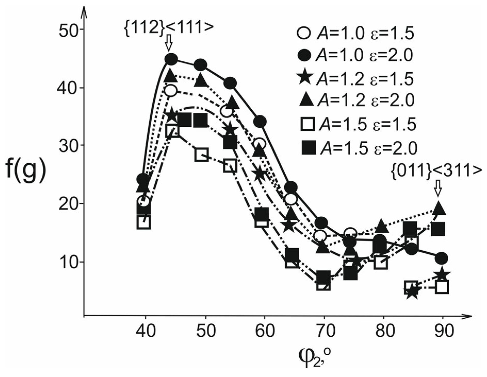 4.5. Rolling Textures Developed for Grains from Group No. 5