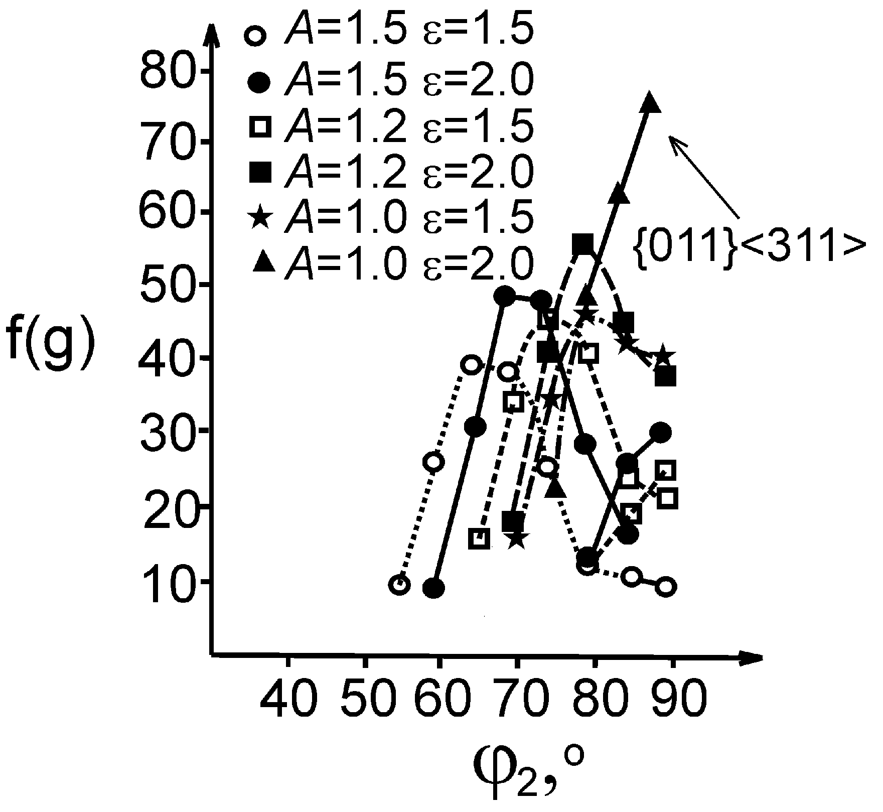 - Development of the B component is associated with relaxation of the shear strain occurring in the rolling plane.