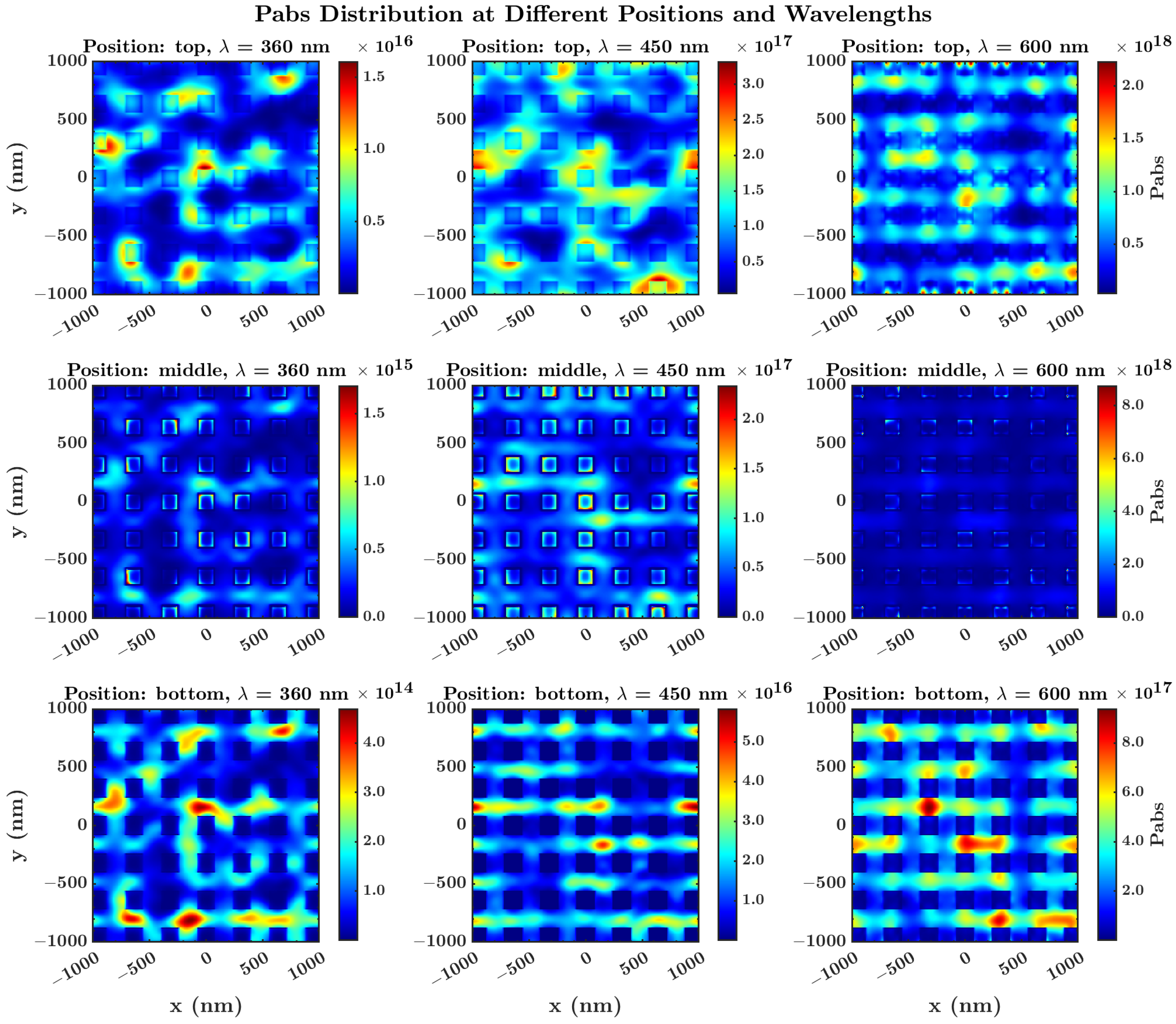 - Packing fraction. Use an intermediate surface coverage so that useful scattering and near-field localization are maintained while near-field overlap and metal loss remain bounded; the present scans indicate an optimum near , consistent with trends observed for plasmonic light management in photovoltaics [2].