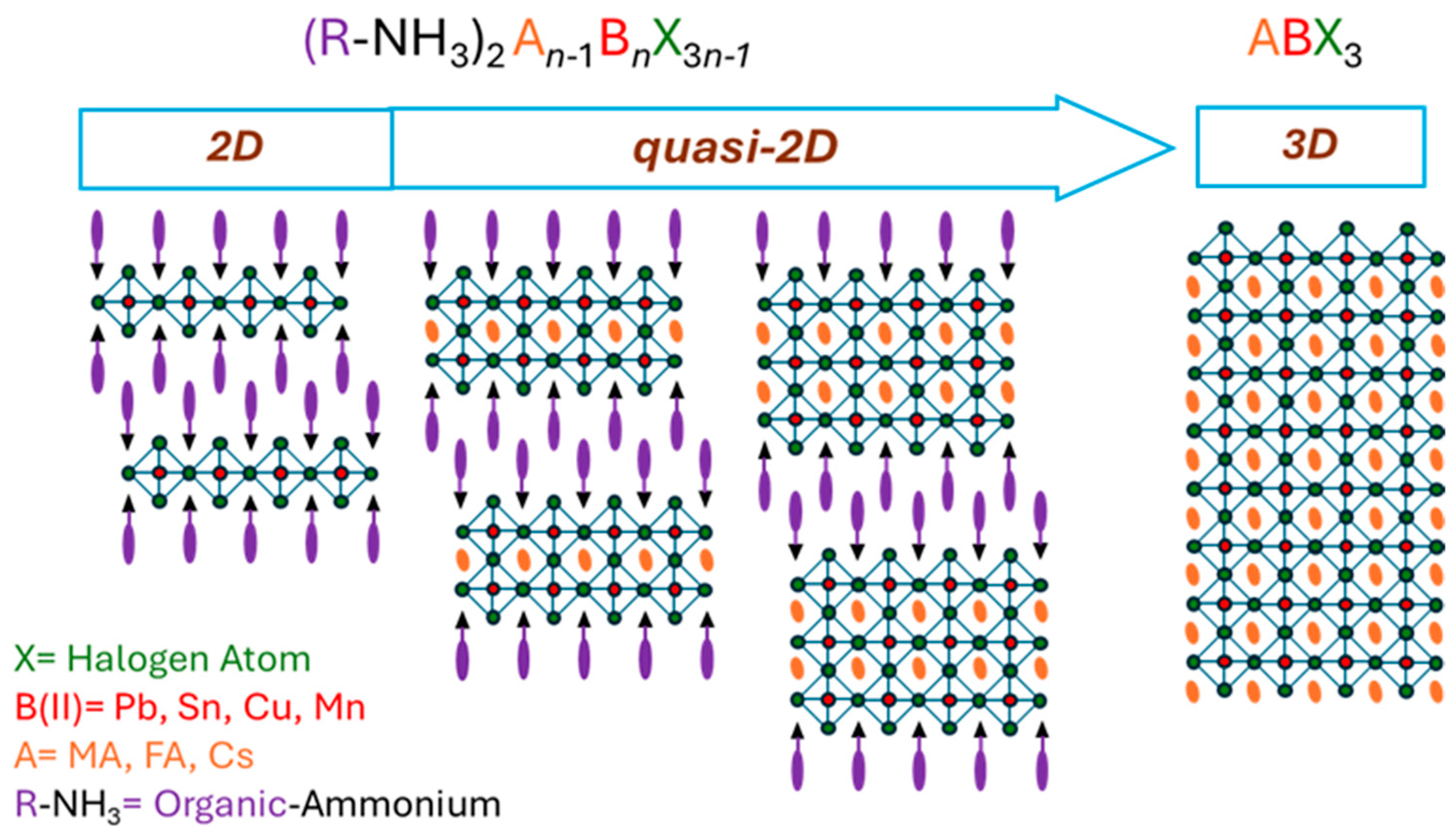 - Mao, L.; Stoumpos, C.C.; Kanatzidis, M.G. Two-Dimensional Hybrid Halide Perovskites: Principles and Promises. J. Am. Chem. Soc. 2019, 141, 1171–1190. [Google Scholar] [CrossRef]