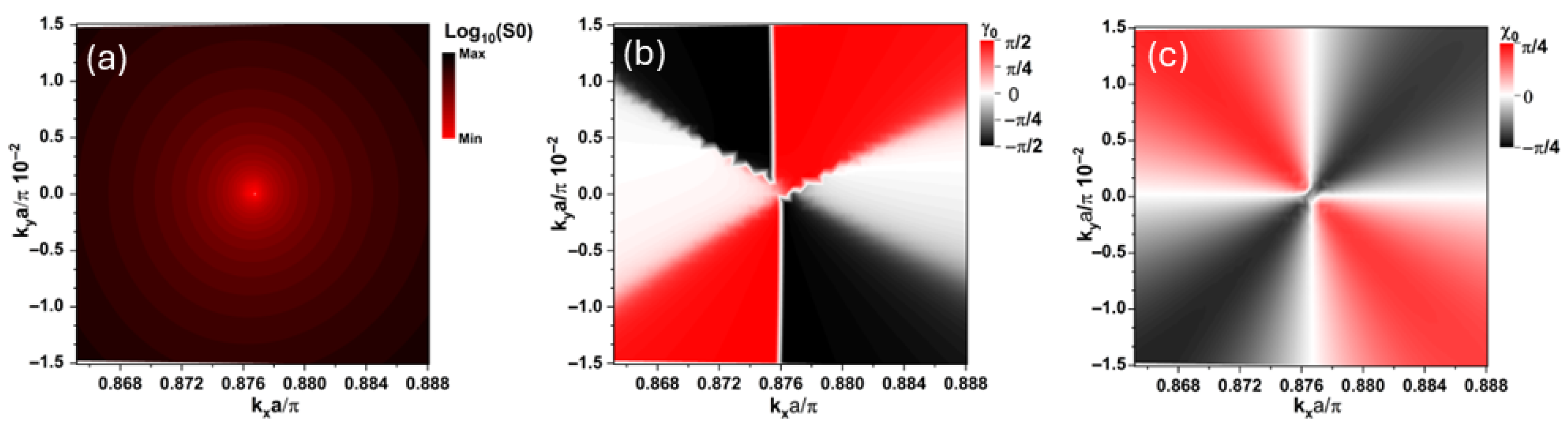 In conclusion, the occurrence of the accidental BIC in SPCs with shallow surface relief does not rely on the coupling between modes or the interference from multiple radiative paths, but on the fulfillment of the condition for null amplitude of the transverse radiative channel and the dispersion relation simultaneously. An analytical value for the location of the accidental BIC on the dispersion curve was obtained using the partial-wave model and the EL approximation. Consequently, this type of BIC originates from a singular state and is associated with a single radiative channel; thus, their existence does not necessitate coupling between modes or interference from multiple radiative paths.