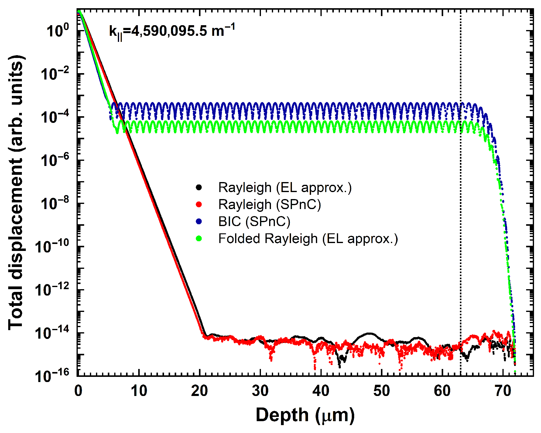 Nevertheless, the search for solutions describing radiative waves relies on avoiding reflections from the bottom of the computational domain owing to leakage. Perfectly matched layers (PML) and viscoelastic absorbing regions (VAR), which were previously used to avoid undesired reflections from bounded domains in the material’s response to a mechanical excitation [