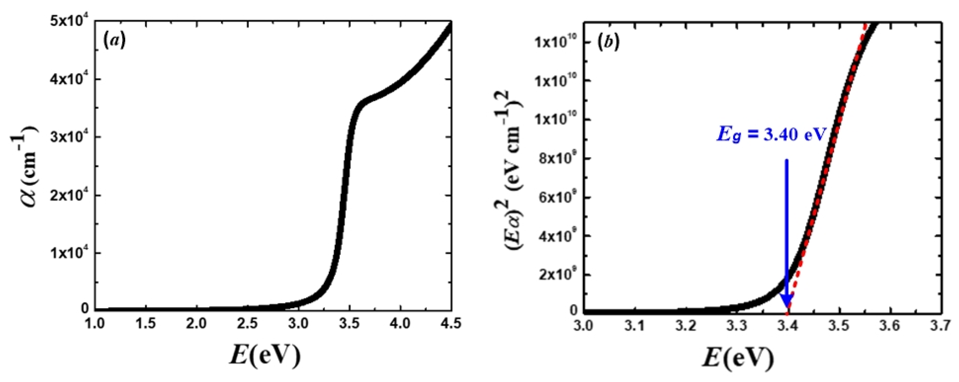 | Optical bandgap (eV) | Eg | 3.417 | ±0.015 |
