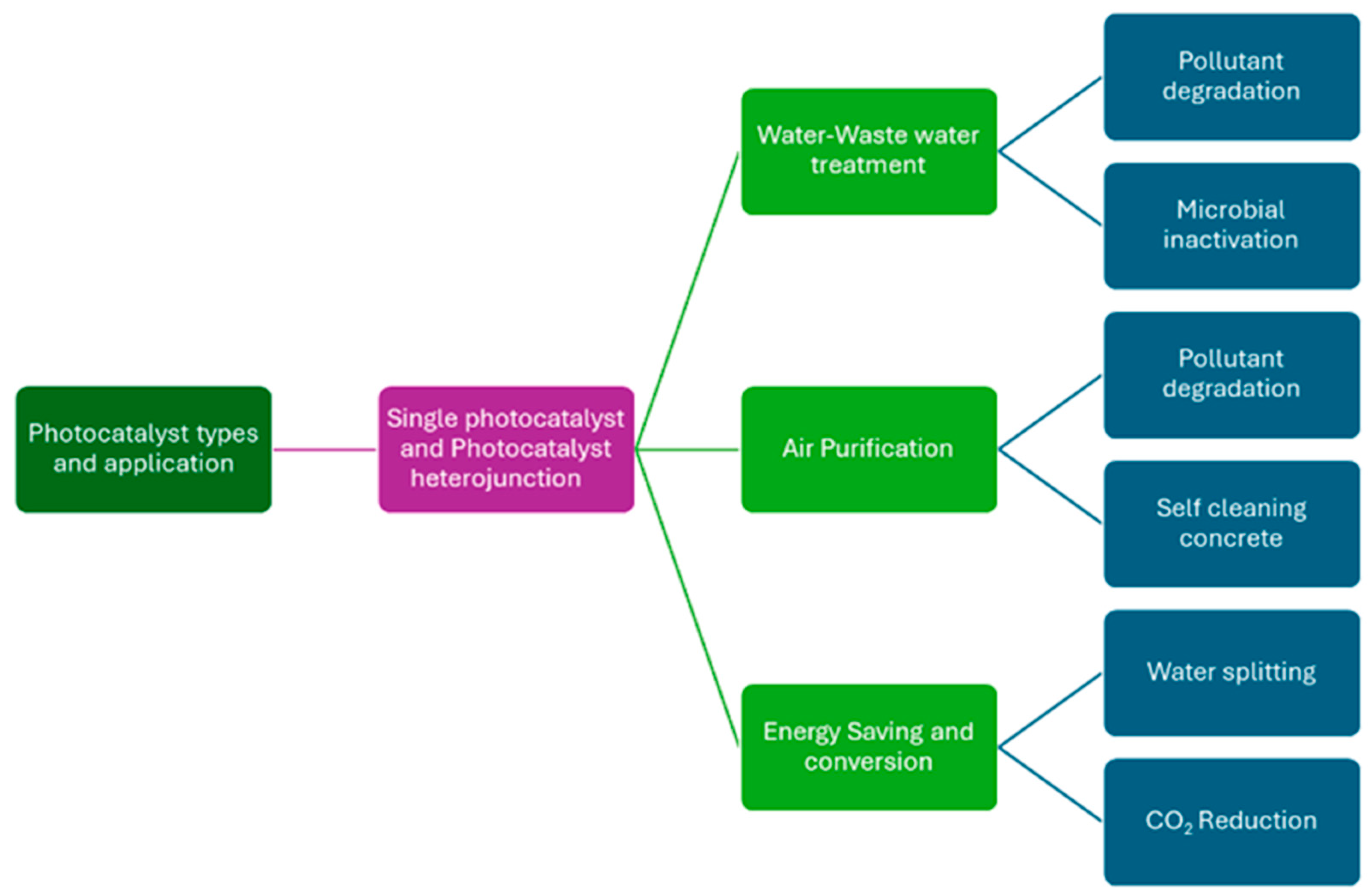 - Askari, N.; Jamalzadeh, M.; Askari, A.; Liu, N.; Samali, B.; Sillanpaa, M.; Sheppard, L.; Li, H.; Dewil, R. Unveiling the Photocatalytic Marvels: Recent Advances in Solar Heterojunctions for Environmental Remediation and Energy Harvesting. J. Environ. Sci. 2025, 148, 283–297. [Google Scholar] [CrossRef]