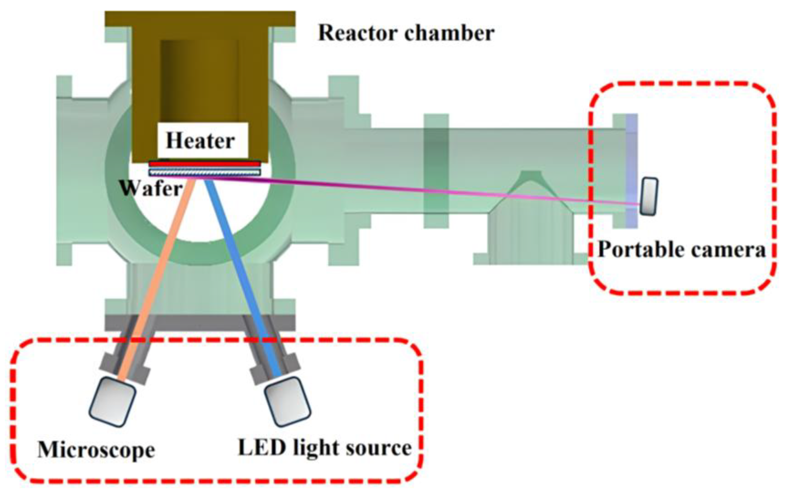 - Zhang, X.; Trainor, N.; McKnight, T.V.; Graves, A.R.; Wu, Z.; Xu, L.; Redwing, J.M. Metal-Organic Chemical Vapour Deposition for 2D Chalcogenides. Nat. Rev. Methods Primers 2025, 5, 57. [Google Scholar] [CrossRef]