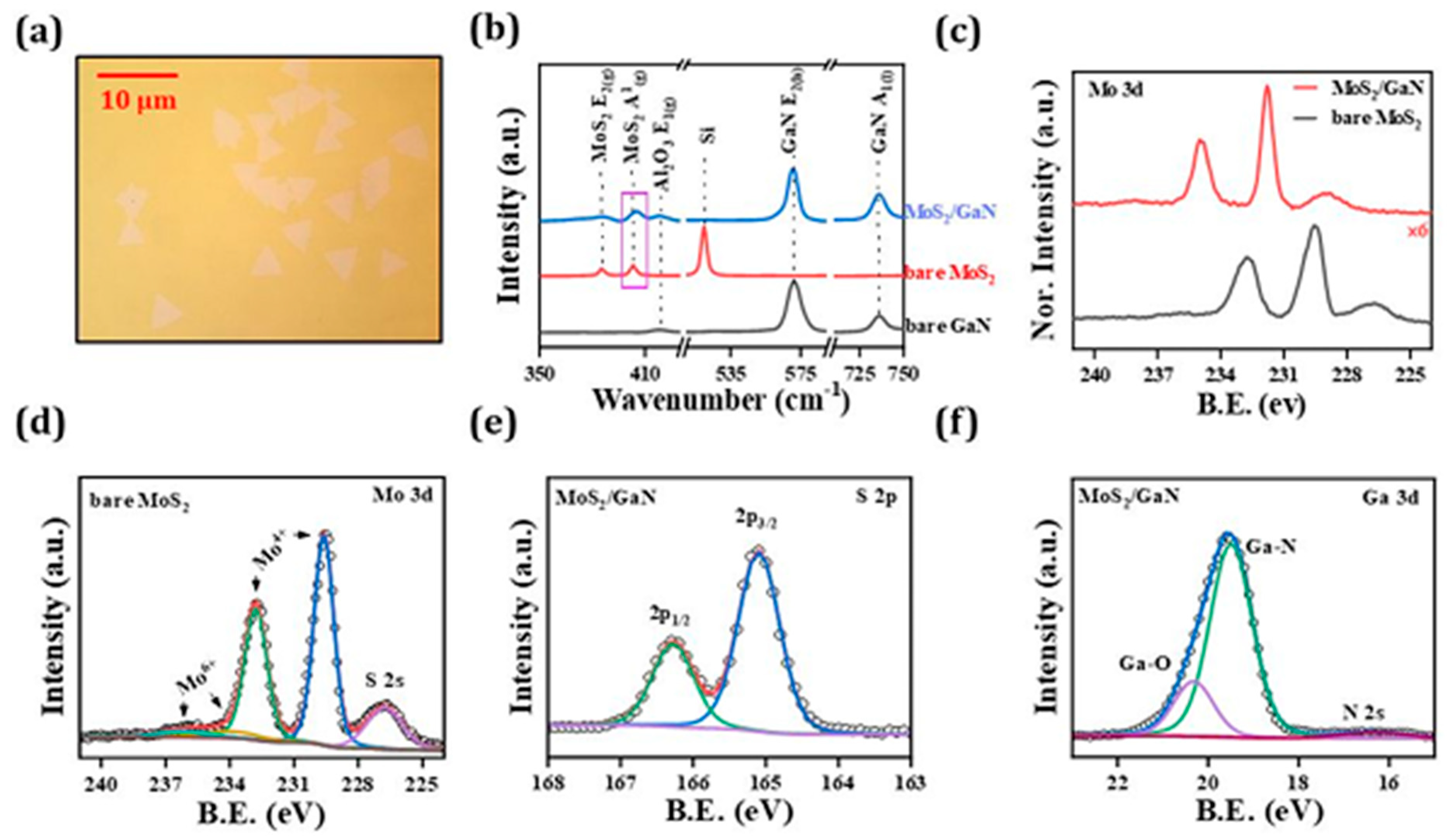 - Singh, A.; Moun, M.; Sharma, M.; Barman, A.; Kapoor, A.K.; Singh, R. Substrate-Dependent 2D Nucleation Growth of MoS2 Assisted by NaCl. Appl. Surf. Sci. 2021, 538, 148201. [Google Scholar] [CrossRef]