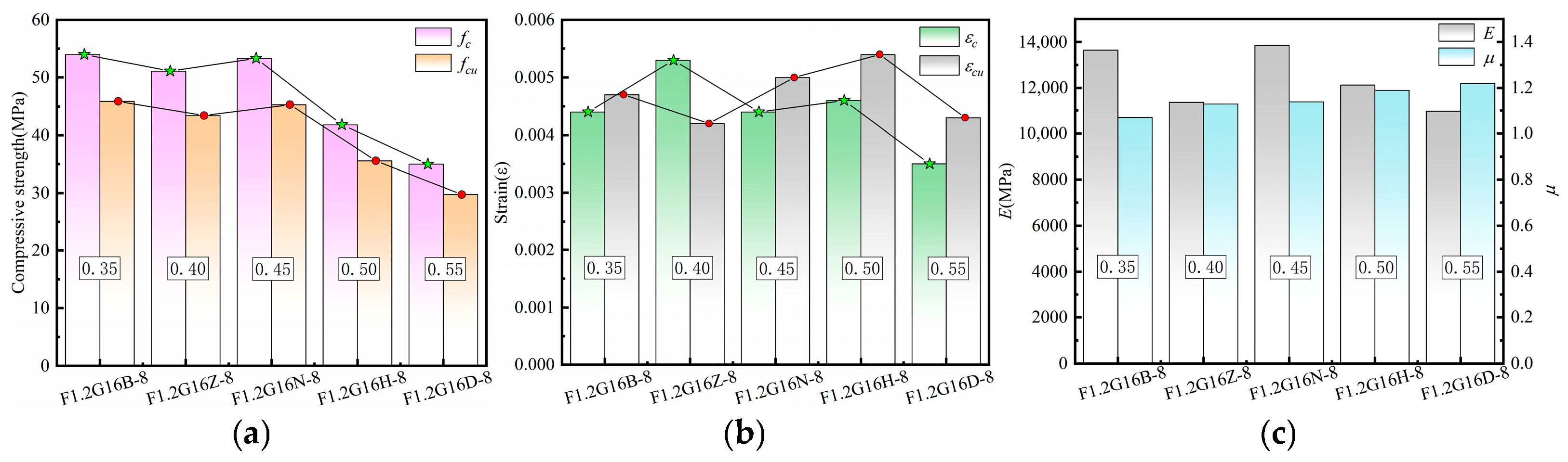 3.4. Uniaxial Compression Performance of Cementitious Materials