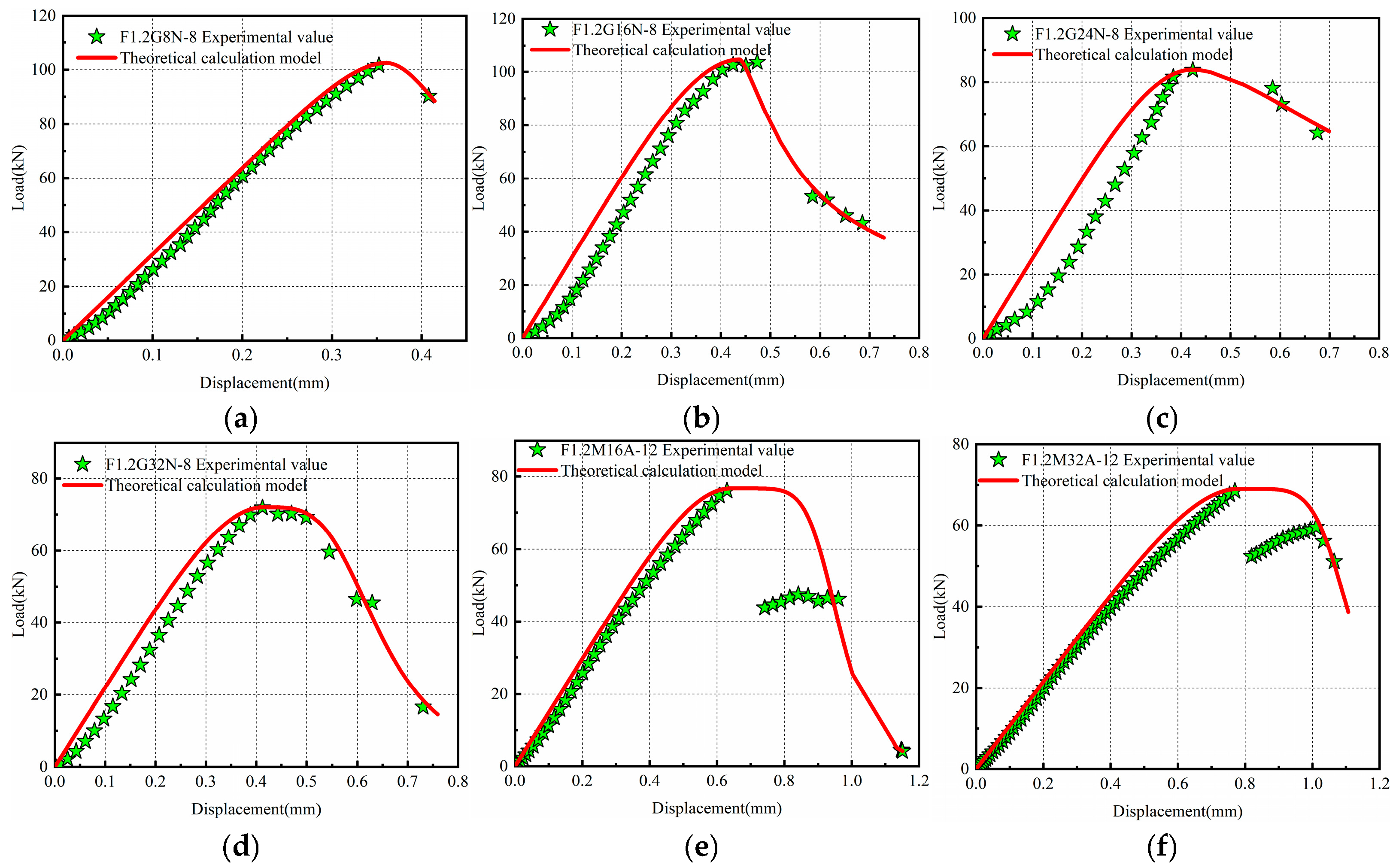 3.5. Computational Model for Complete Load–Displacement Curves of Specimens