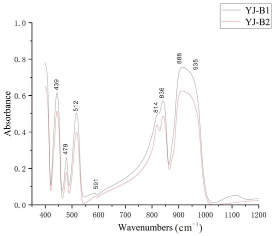 From Figure 7, we can observe that the peak at 888 cm−1 and the peak at 935 cm−1 of the two samples undergo significant peak merging. Therefore, the peak at 814 cm−1 and the peak at 835 cm−1 also show a certain degree of peak merging.