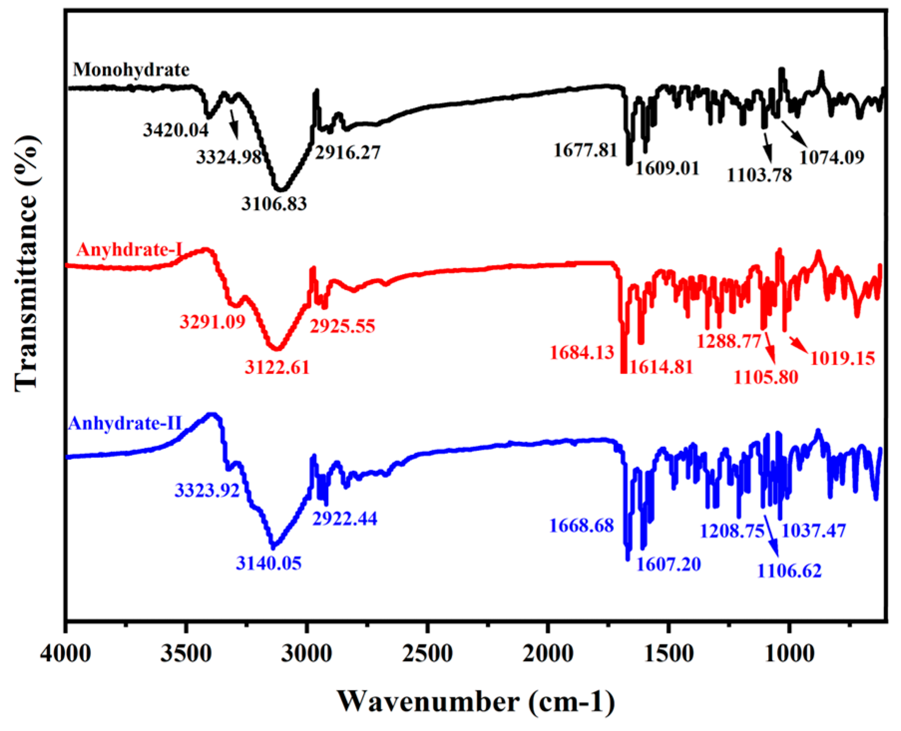 3.3. Comparative Infrared Spectra for Three Cordycepin Crystal Forms