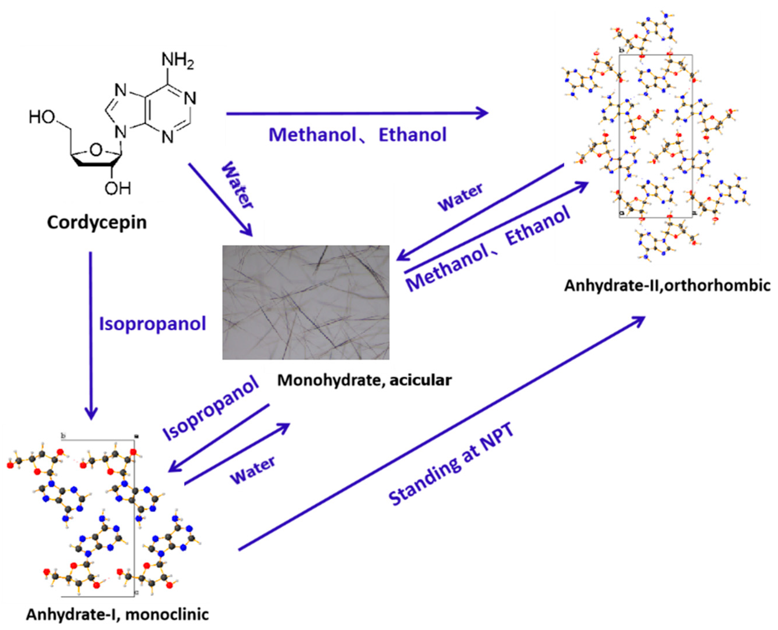 3.5. Transformation Relationship Among Various Cordycepin Crystal Forms