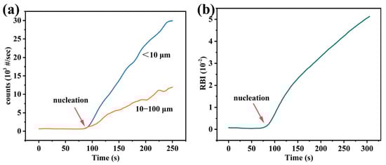 (a) FBRM and (b) PVM data at the point of nucleation at a temperature of 308.15 K.