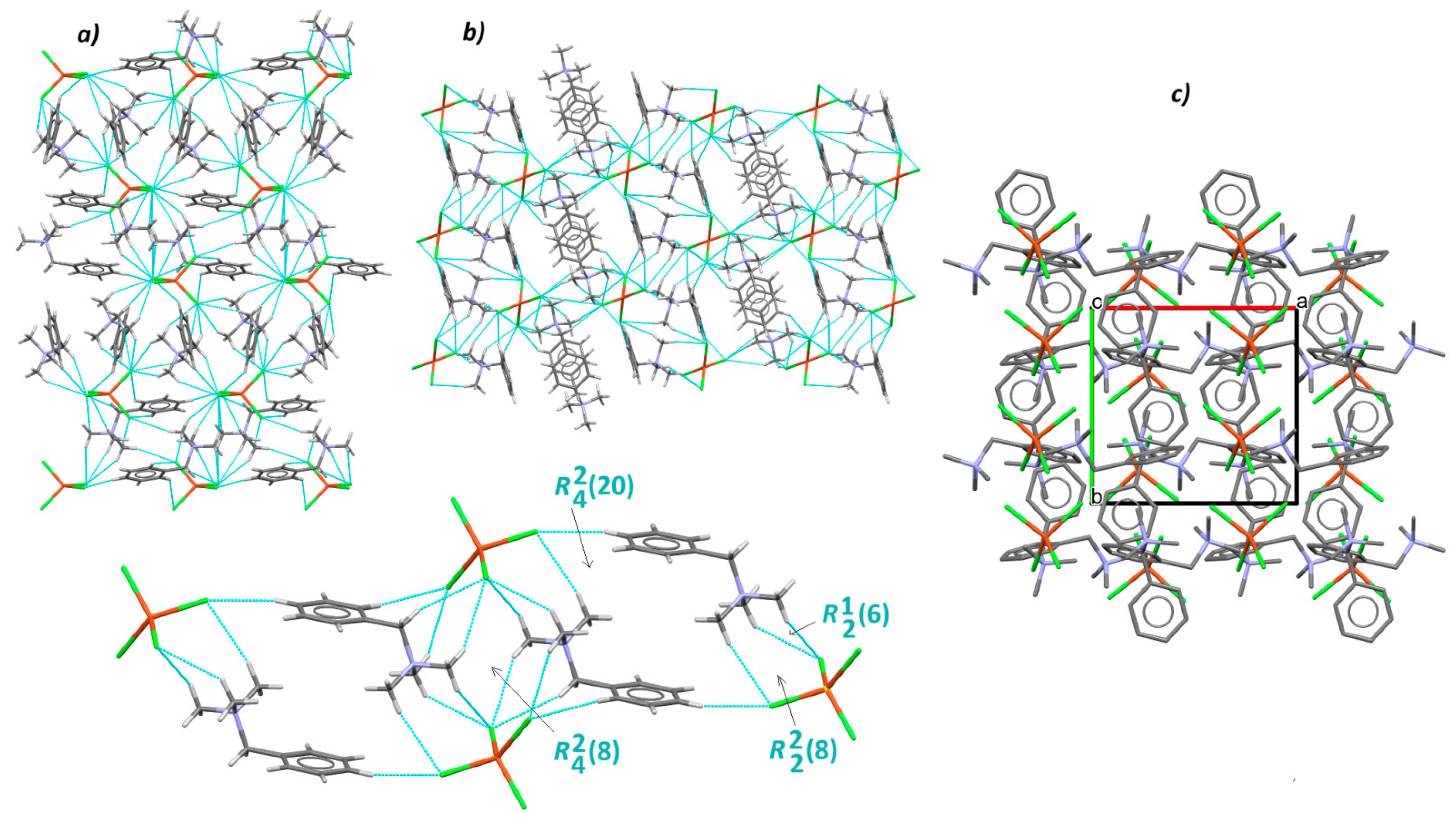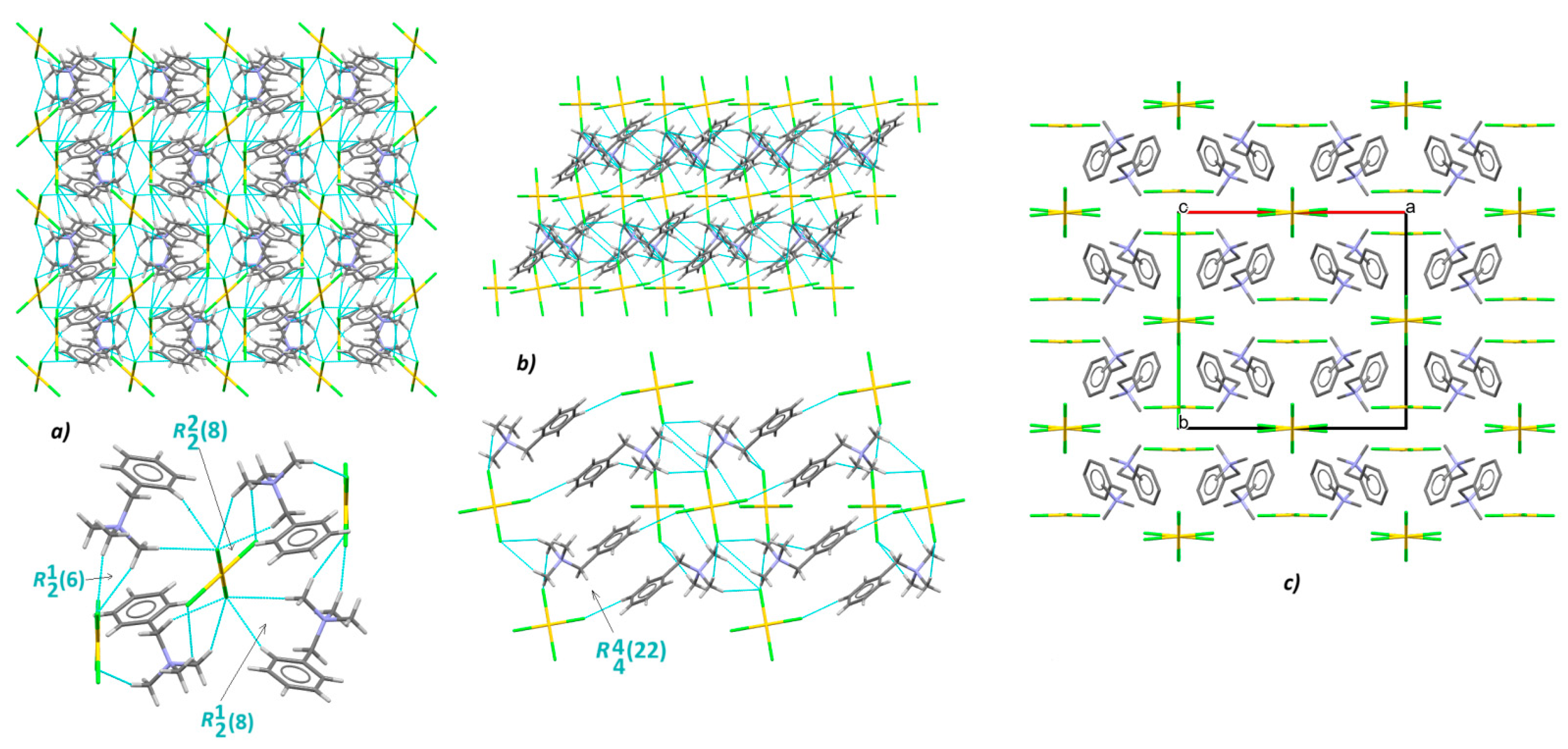 - Jin, Y.; Yu, C.-H.; Zhang, W. Structural diversity of a series of chlorocadmate (II) and chlorocuprate (II) complexes based on benzylamine and its N-methylated derivatives. J. Coord. Chem. 2014, 67, 1156–1173. [Google Scholar] [CrossRef]