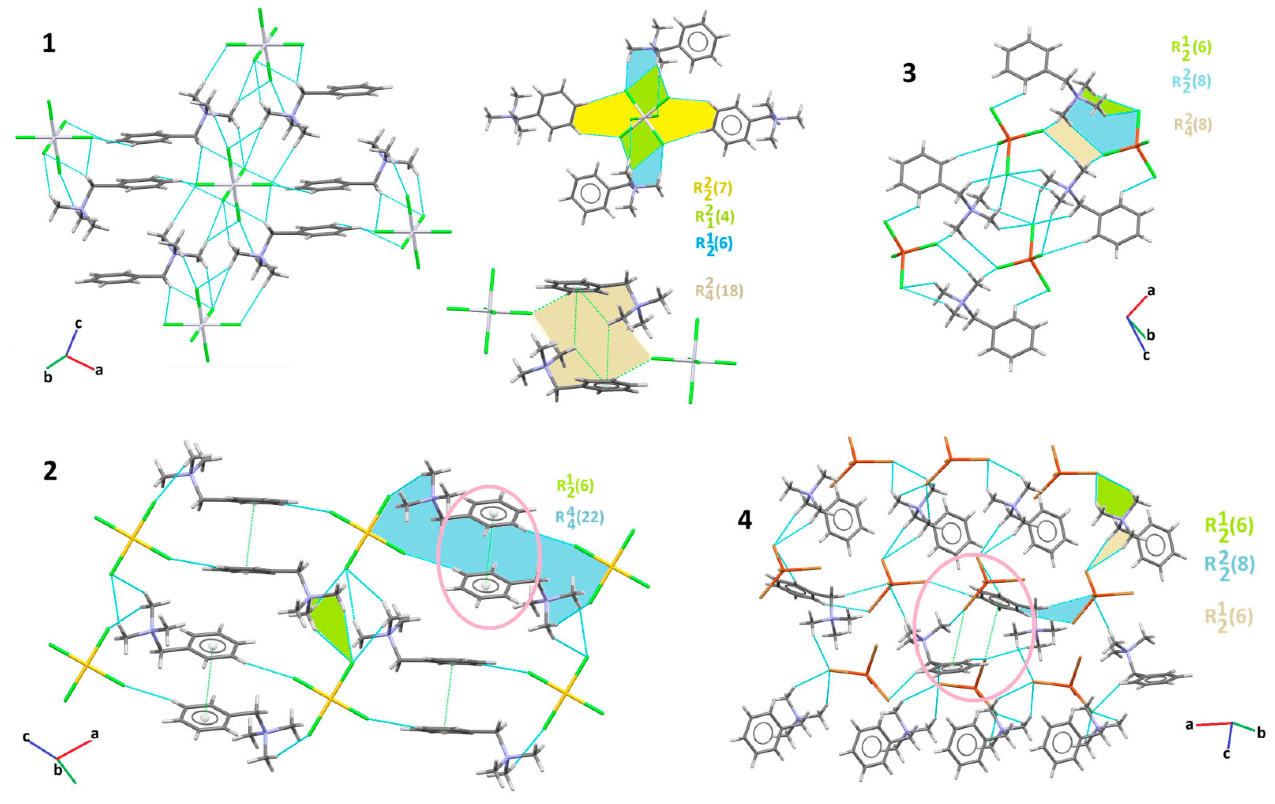 3.2. Supramolecular Features of 1–4
