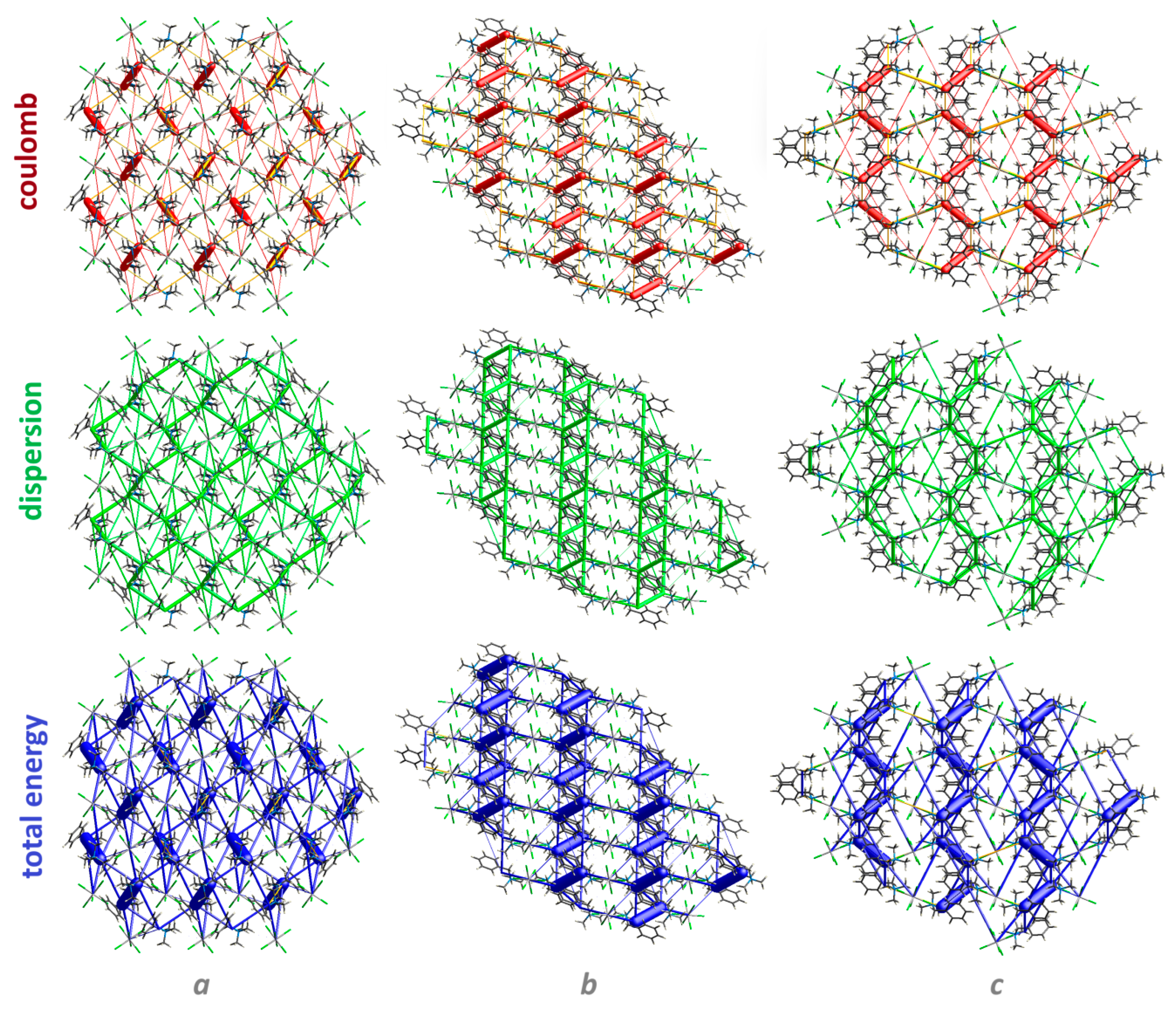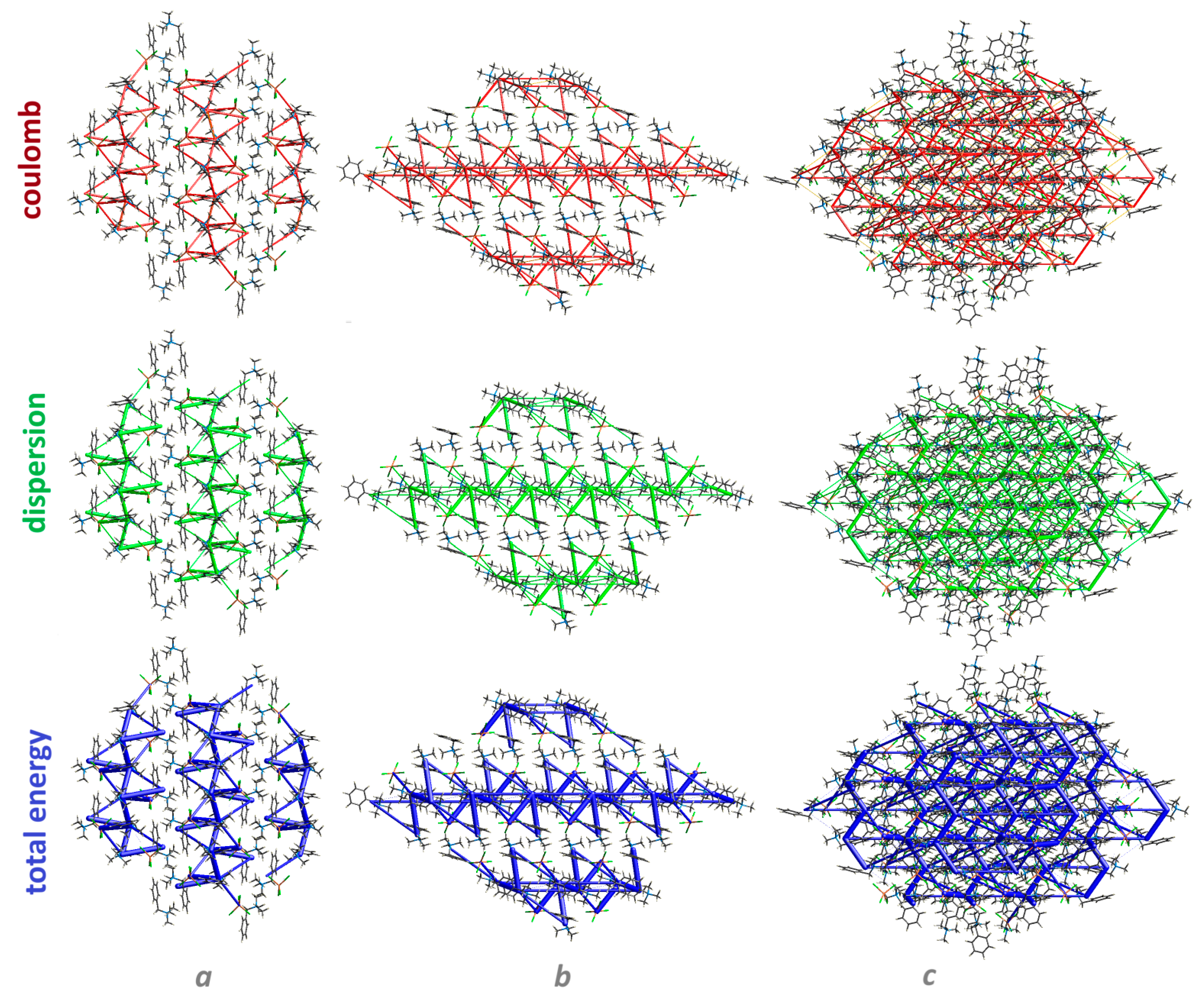 - Mackenzie, C.F.; Spackman, P.R.; Jayatilaka, D.; Spackman, M.A. CrystalExplorer model energies and energy frameworks: Extension to metal coordination compounds, organic salts, solvates and open-shell systems. IUCrJ 2017, 4, 575–587. [Google Scholar] [CrossRef]