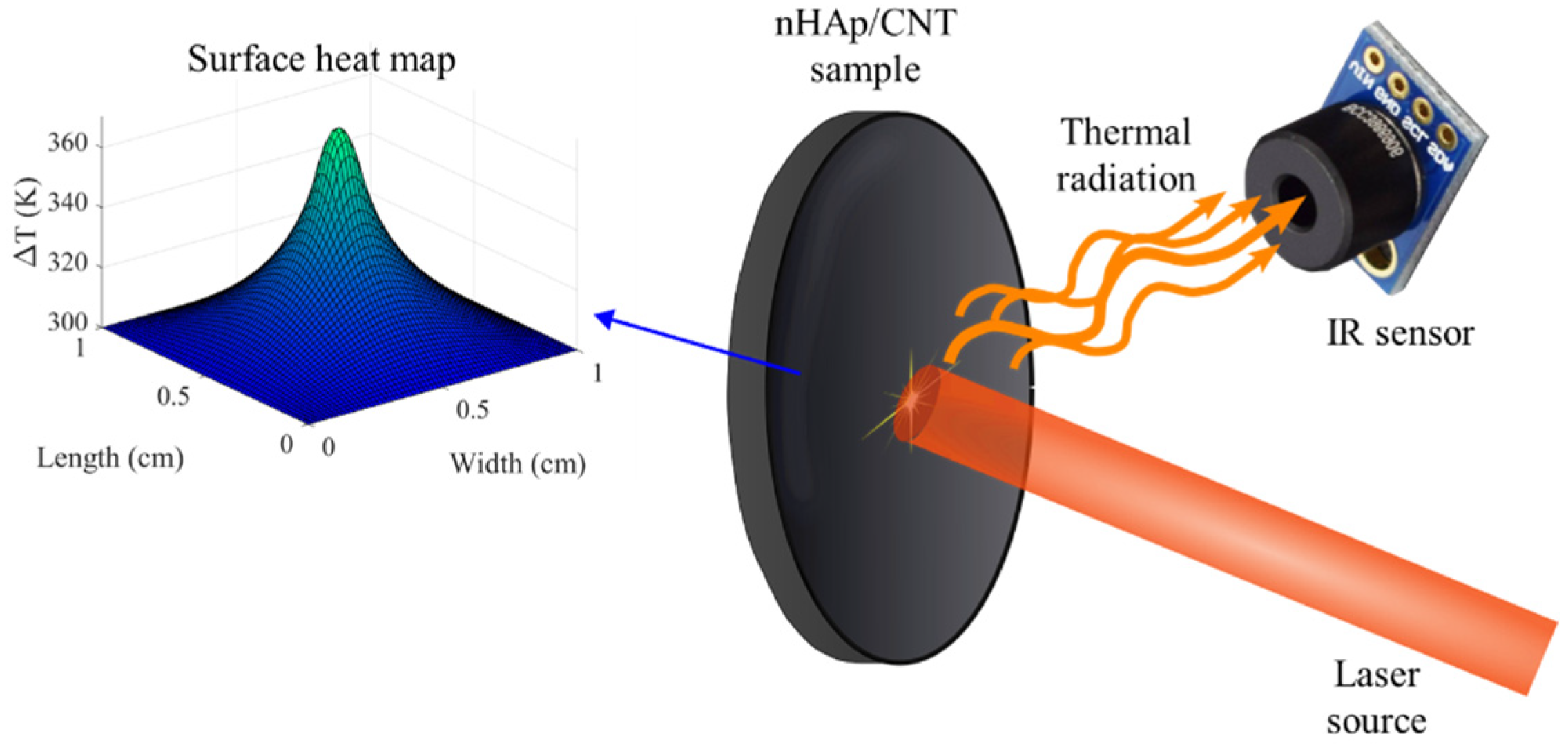 Mercado-Zúñiga, C.; García-Merino, J.A. Photothermal Heat Transfer in Nano-Hydroxyapatite/Carbon Nanotubes Composites Modeled Through Cellular Automata. Crystals 2025, 15, 1062. https://doi.org/10.3390/cryst15121062