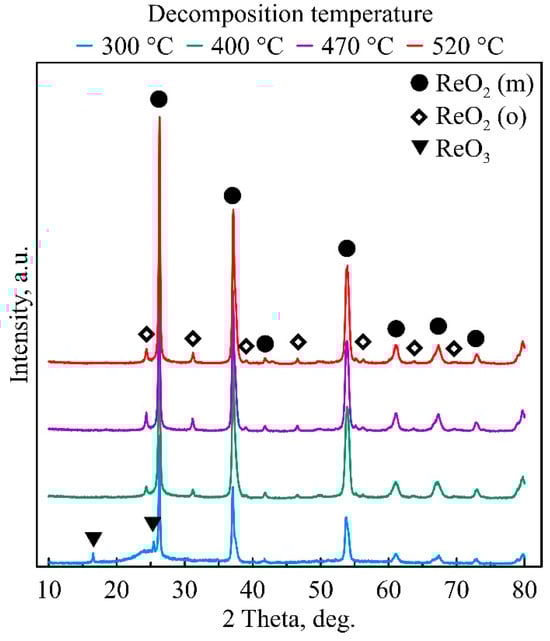 Figure 1a) indicate that metallic rhenium is the primary product of the reduction of ammonium perrhenate over the entire temperature range (25–1000 °C).