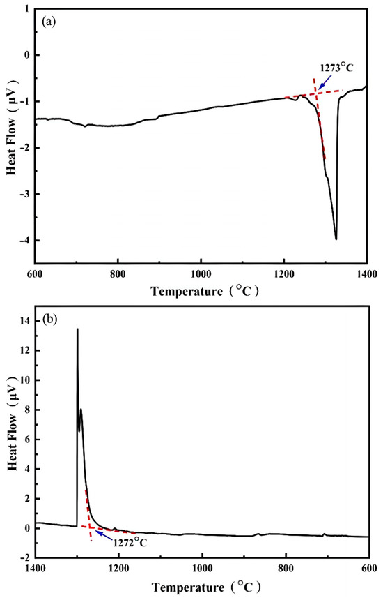 Differential thermal analysis curve of AlCuCrFe2NiTi0.25 high-entropy alloy: (a) heating up; (b) cooling down.