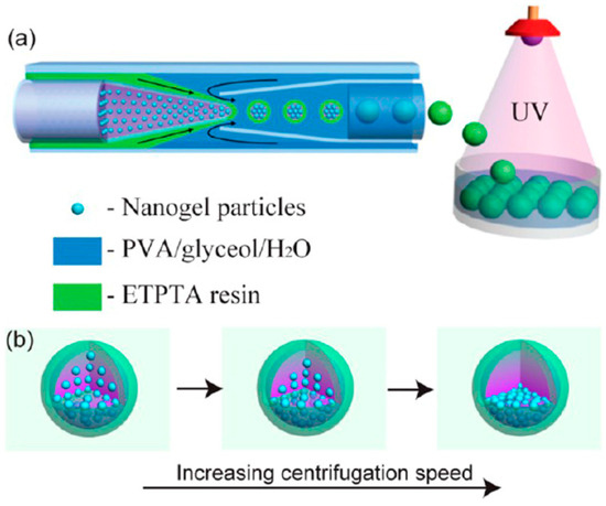 (a) Illustration showing the synthesis strategy of the photonic crystal (PC) microspheres through microfluidic technique; (b) illustration showing the formation of Janus PC microspheres through sedimentation of the microgels by centrifugation. Reprinted with permission from Ref. [80]. Copyright 2013, ACS.
