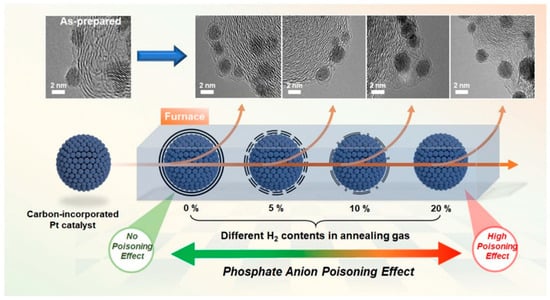- Park, J.-H.; Saito, N.; Kawasumi, M. Improving the Durability and Anti-Poisoning Properties of Platinum Catalysts by Carbon Shell Encapsulation: A Promising Approach for Both Cathode and Anode Catalysts for Polymer Electrolyte Membrane Fuel Cells. Int. J. Hydrog. Energy 2024, 72, 642–651. [Google Scholar] [CrossRef]