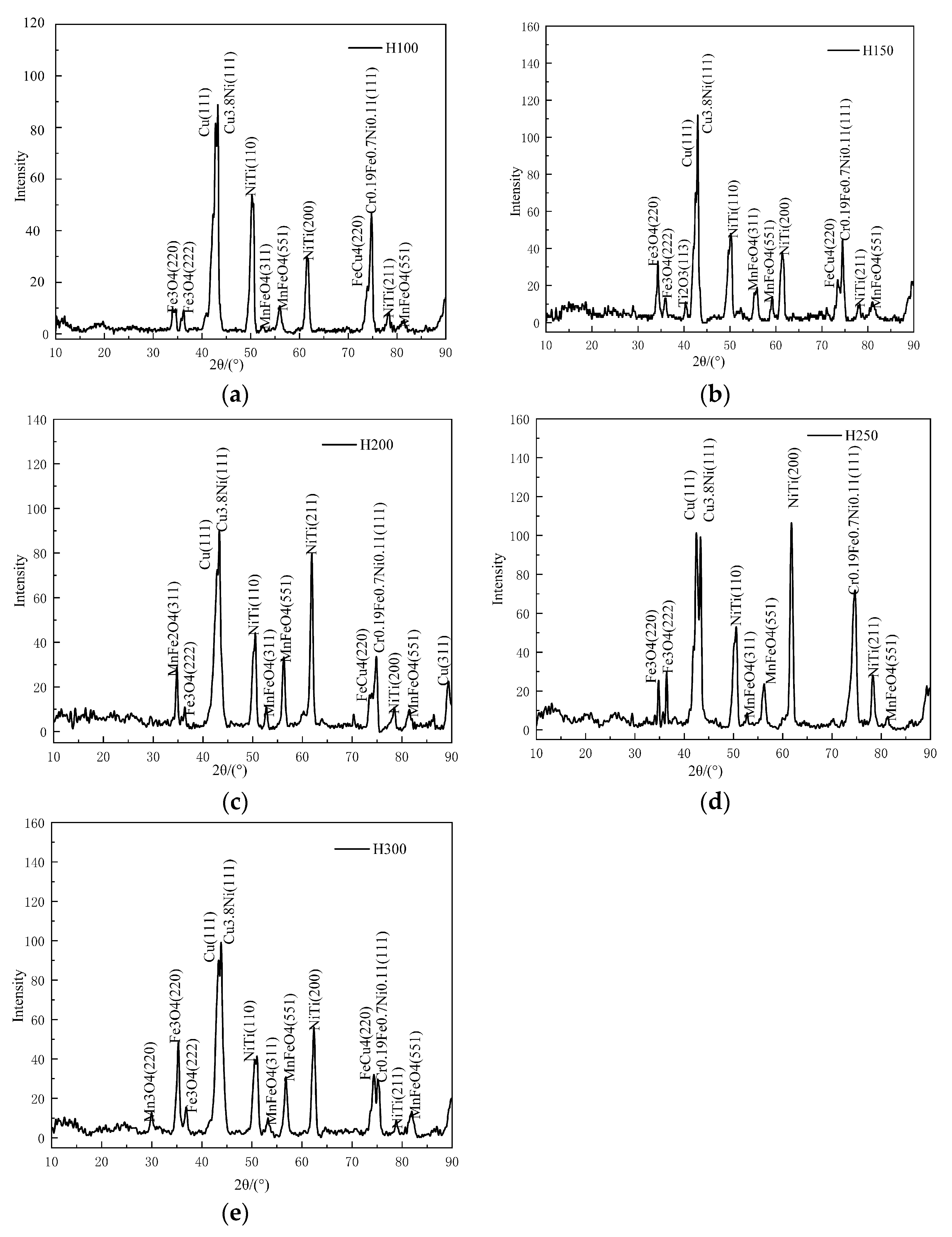 - Liu, J.; Li, J.; Yang, H.L.; Ruan, J.M. Microstructure of titanium-nickel alloy by mechanical alloying. J. Cent. South Univ. (Sci. Technol.) 2015, 46, 1202–1207. [Google Scholar]