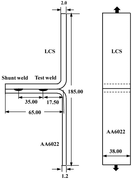 Chao et al. predicted the fracture modes of tensile shear and cross tension configurations based on the theory of fracture mechanics [10]. Distinguishing between the two fracture modes was achieved through an analysis that yielded a critical weld nugget diameter. The equation for deriving the critical weld nugget diameter incorporated two material properties, namely the shear strength and fracture toughness Kc (Equation (2)).