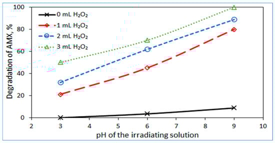 3.1. Influence of Solution pH on AMX Degradation