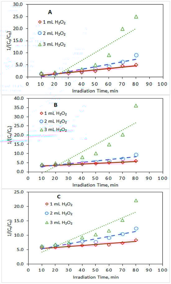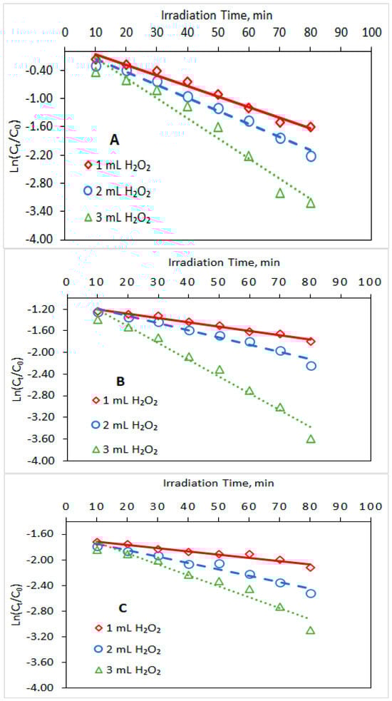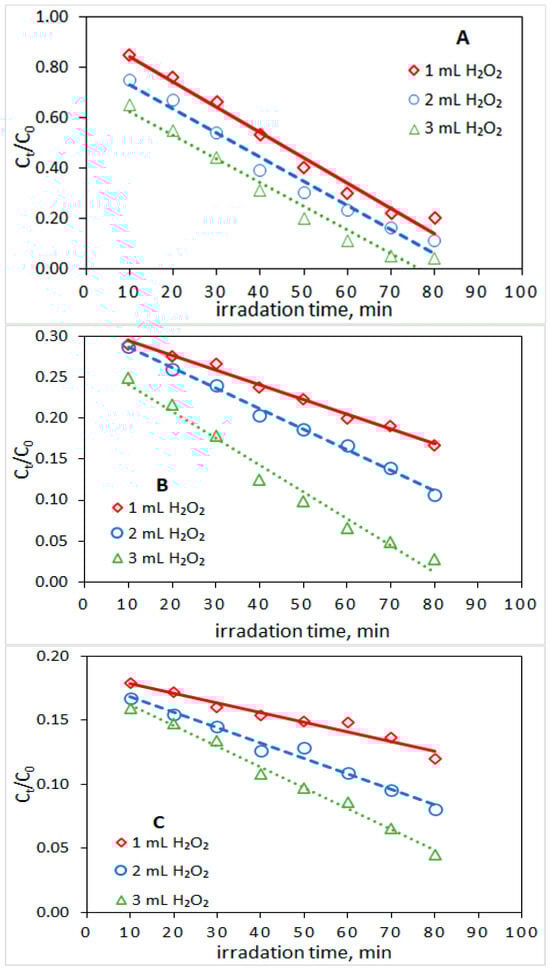 3.2. Influence of H2O2 Concentration in the Reacting Solution
