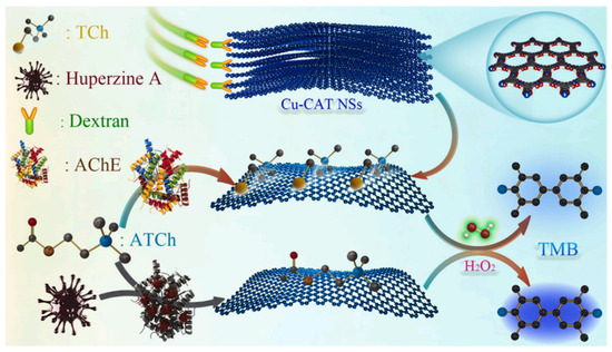 - Wang, F.; Liu, M.; Niu, X.; Xia, L.; Qu, F. Dextran-assisted ultrasonic exfoliation of two-dimensional metal-organic frameworks to evaluate acetylcholinesterase activity and inhibitor screening. Anal. Chim. Acta 2023, 1243, 340815. [Google Scholar] [CrossRef] [PubMed]