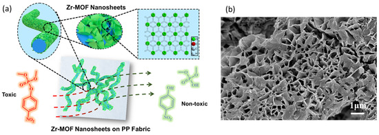 - Tao, C.-a.; Zhao, H.; Dong, R.; Li, Y.; Wang, F.; Zhao, S.; Wang, J. Zr-MOF Nanosheets Vertically Grown on Fabrics for Rapid Catalytic Elimination of Nerve Agent Simulants. ACS Appl. Nano Mater. 2024, 7, 13681–13692. [Google Scholar] [CrossRef]