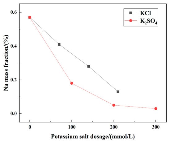 Mass fraction of Na+ in crystalline products with different impurity ion contents.
