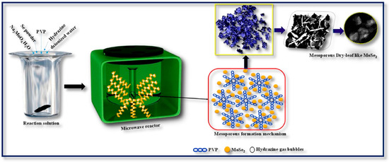 Schematic picture for the preparation and mechanism for the formation of dry leaf-like mesoporous MoSe2. Reproduced with permission [31].