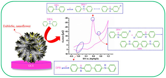 Schematic representation of the working of the EuMoSe2/GCE for the sensing of DPA. Reproduced with permission [91].