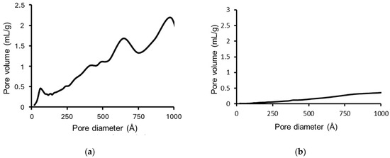 Pore size distributions for PrecEtOH(2 h) (a) and PrecEtOH(6 h) (b).
