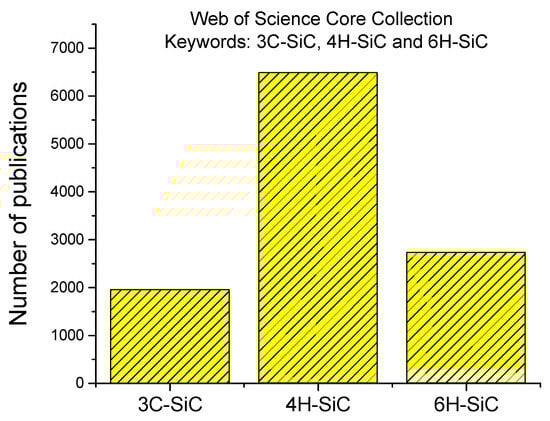 Total number of SiC publications. Data are extracted from the Web of Science Core Collection with keywords “3C-SiC”, “4H-SiC”, and “6H-SiC”.