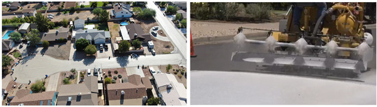 - Ariane, M.; Jennifer, V.; Kamil, K.; David, S.; Jose, M.; Bill, C.; Zachary, V.T.; Jolina, K.; Linus, N.; Portia, L.; et al. Cool Pavement Pilot Program; City of Phoenix: Phoenix, AZ, USA, 2024. [Google Scholar]