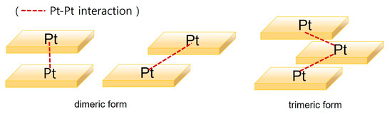 - Yoshida, M.; Kato, M. Regulation of metal–metal interactions and chromic phenomena of multi-decker platinum complexes having π-systems. Coord. Chem. Rev. 2018, 355, 101–115. [Google Scholar] [CrossRef]