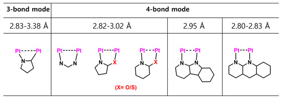 Representative Pt–Pt distance of double-decker-type diplatinum (II) complexes depending on the bridging mode. Image reproduced with permission from [89]; Copyright 2023 WILEY.