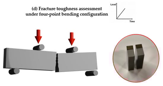 Then, fracture toughness using at least three SENB samples was determined by testing the pre-cracked specimens to failure under a constant loading rate of 100 N/s (Figure 2d). In doing so, linear elastic fracture mechanics (LEFM) were implemented using the following equations (Equations (2) and (3)) []: