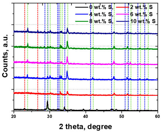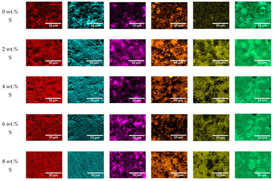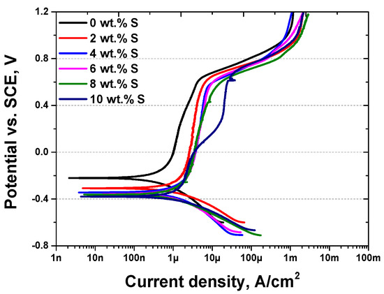 - This study investigated the effects of sulfur addition (0–10 wt.%) on the microstructure, electrochemical behavior, and corrosion resistance of cement. The results indicate that sulfur alters the phase composition, as confirmed by the XRD and XPS analyses, leading to a shift in the main peaks and crystallographic transformations. FE-SEM analysis revealed that increased sulfur content resulted in dendritic growth, increased porosity, and crack formation, which may negatively affect the mechanical strength and long-term durability of cement.