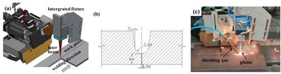 Laser-backing welding on X80 steel plate: (a) schematic diagram of laser welding; (b) joint design; (c) welding process.