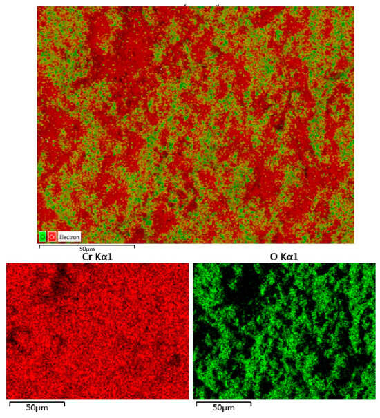 Figure 11. EDS mapping results of the optimized chromium oxide coatings for coating II (high porosity level).