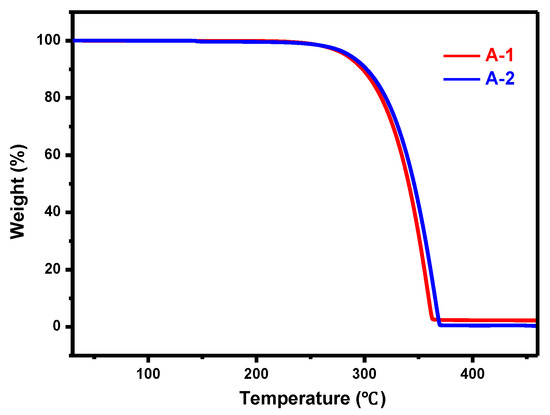 TG curves of thermal decomposition of compounds A-1 and A-2 in nitrogen.