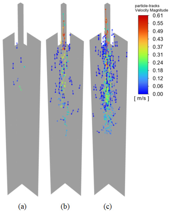 Argon bubble distribution at different amounts of argon blowing. (a) 0.50 L·min−1. (b) 0.75 L·min−1. (c) 1.00 L·min−1.