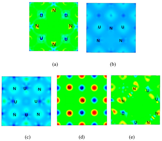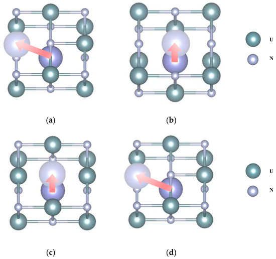 - Bocharov, D.; Gryaznov, D.; Zhukovskii, Y.; Kotomin, E. DFT calculations of point defects on UN(001) surface. Surf. Sci. 2011, 605, 396–400. [Google Scholar] [CrossRef]